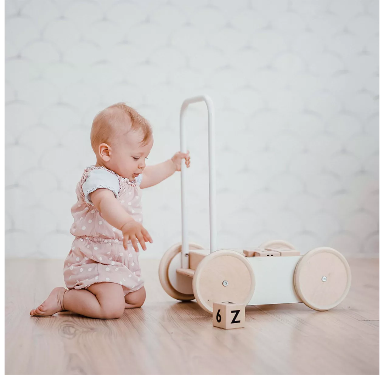 Tout en rondeur pour éviter les chocs, le chariot de marche Baby Walker de Ooh Noo a été pensé pour accompagner les premiers pas de votre bébé avec élégance et pertinence. Facile à prendre en main, ses grandes roues antidérapantes offrent une bonne tenue et rendent le chariot très stable. Son plateau est ouvert sur l’avant, ce qui permet à votre enfant de monter facilement. Un chariot qui promet des heures de jeux avec les frères et soeurs, le chat ou les doudous ! Son design sobre d’inspiration scandinave en fait un objet très déco.