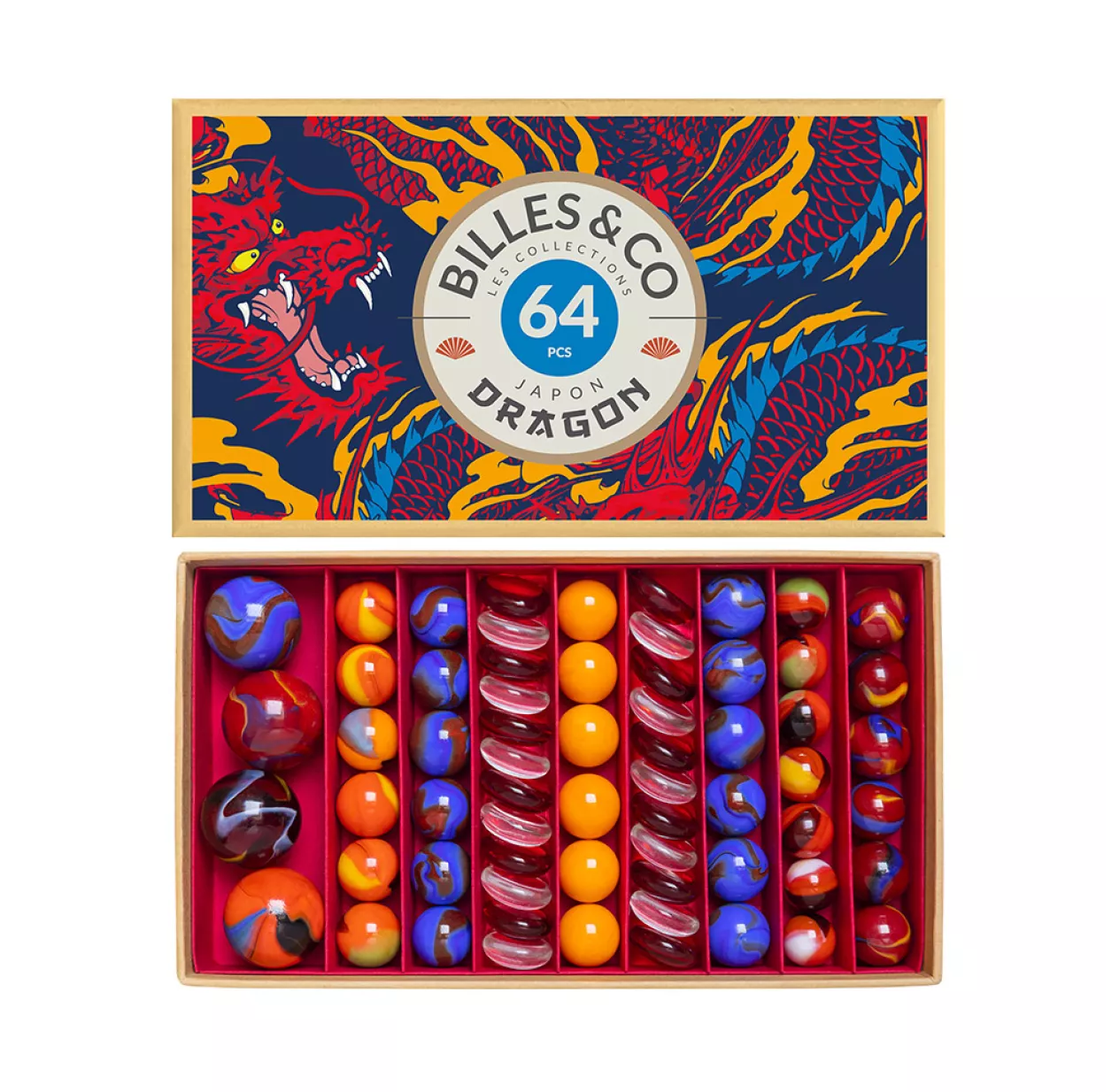 Découvrez la version Dragon Feu de notre nouvel univers Japon. Set de billes flamboyantes. Que les flammes du Dragon feu consument tout sur leur passage ! Attention ça va chauffer !