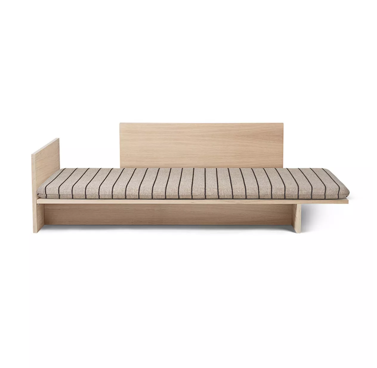 Inspiré du mobilier traditionnel japonais et du « low living », le lit Kona de Ferm Living offre un design épuré et minimal. Son dossier ainsi que sa tête de lit forment un accoudoir et un dossier confortable. Ils vous pemettent d’utiliser le lit Kona comme un daybed ou un lit d’appoint ultra déco. Son nom dérivé du mot japonais « coin » parle de lui-même : ) Ferm Living a imaginé un matelas déco ainsi qu’une table d’appoint pour rendre le lit Kona plus versatile et modulable. Ainsi, la table d’appoint se glisse sous le cadre de lit pour limiter l’encombrement. Le lit Kona de Ferm Living est fabriqué à partir de placage de chêne robuste certifié FSC™. Son panneau arrière se fixe d’un côté comme de l’autre pour s’adapter à votre intérieur.