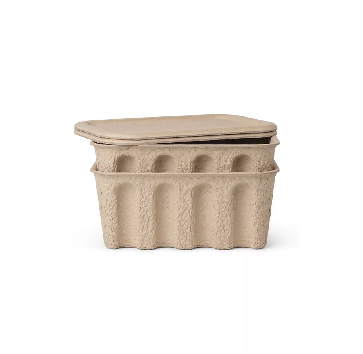 Ces 2 boîtes de rangement sont fabriquées en pulpe de papier recyclé, elles sont complètement biodégradables et écologiques. Un matériau qui confère à ces boîtes de rangement un style à la fois design et brut. On aime leur côté pratique puisqu’elles ont été pensées pour s’empiler. Elles sont extra légères et seront votre meilleure alliée pour le rangement de vos chambres enfant ! Vous pourrez stocker des petits jouets, des accessoires de bureau mais aussi les petits objets du quotidien pour que vos espaces de vie restent fonctionnels et design !