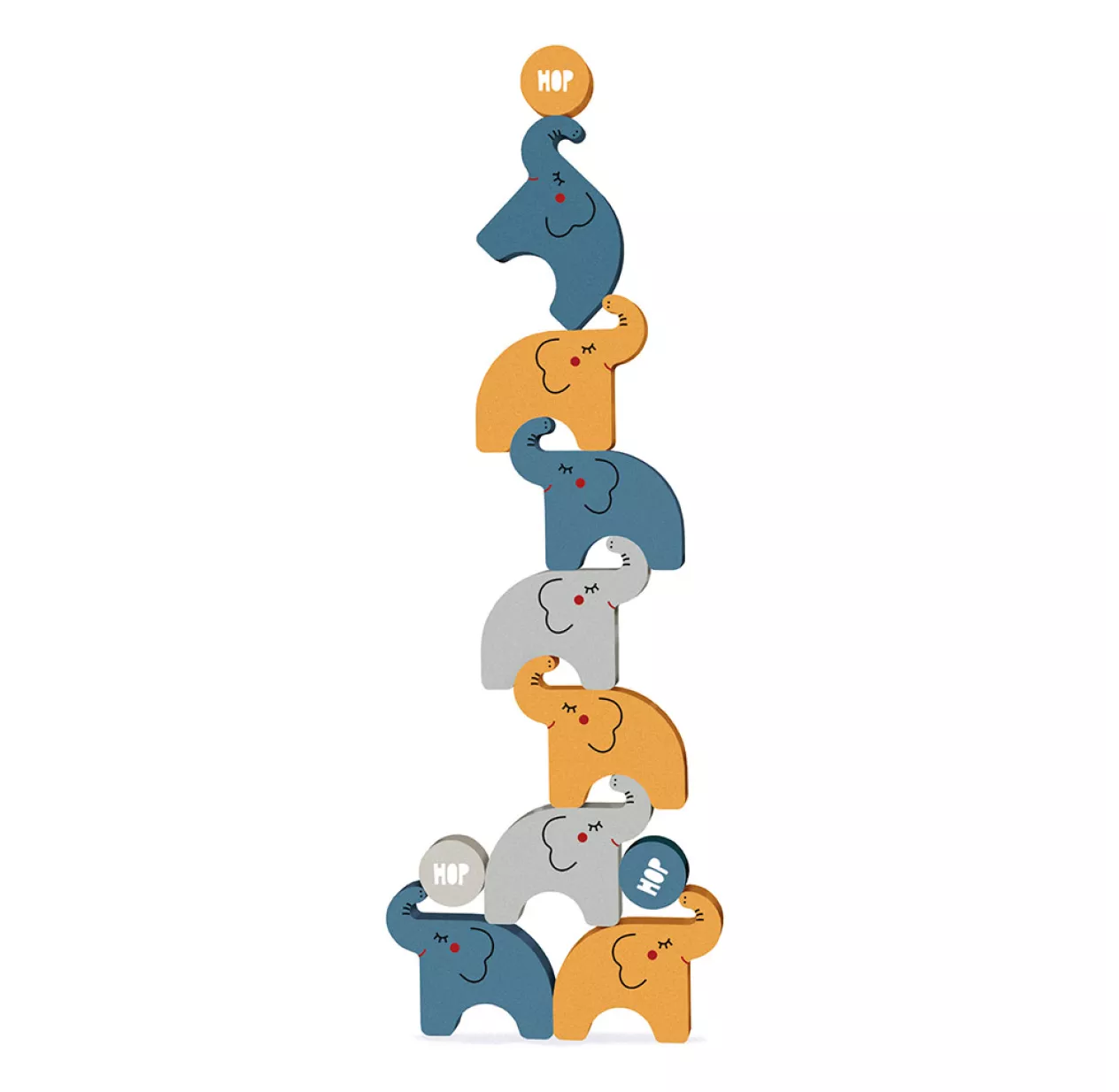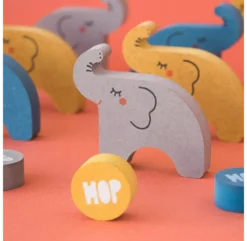 Débute avec un éléphant, puis une balle, puis un autre éléphant, et maintenant… Fais attention de ne pas les faire tomber! Alehop de Londji est un jeu à empiler qui développe la dextérité de l’enfant tout en l’amusant dès 3 ans. Comme toutes les créations de la marque Londji, le jeu Alehop! est réalisé de manière éco-responsable en bois recyclé et teintures organiques.