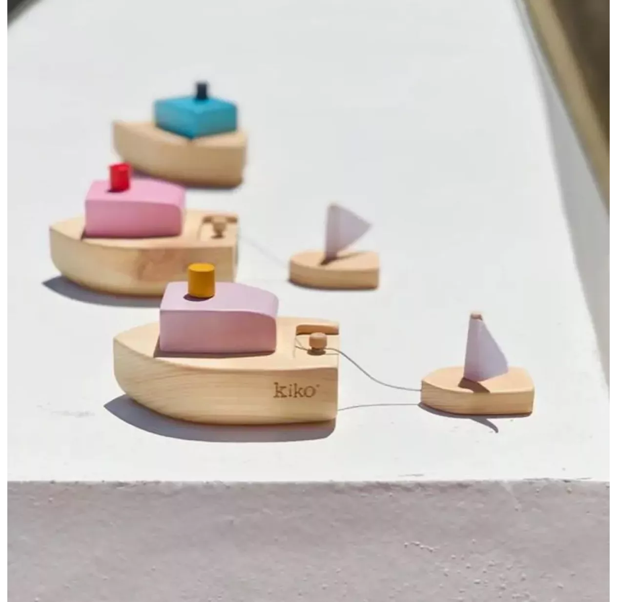 Ofune est un petit bateau en bois à remonter mécanique. Il suffit de remonter son mécanisme en tournant la pièce cylindrique qui lui sert de cheminée et l’hélice située sous le bateau se met à tourner ! Accrochez le petit bateau à voile livré avec et observez le manège de ce joli duo opérer pendant votre toilette ! Le bateau Ofune de Kiko+ est en bois d’Hinoki, un cyprès ancien en provenance du Japon. Le bois d’Hinoki est apprécié pour son arôme et ses vertues. Léger, antimicrobien et naturellement résistant à l’humidité, le bois d’Hinoki est utilisé depuis des siècles dans les bains japonais. Il est idéal pour un jouet de bain !