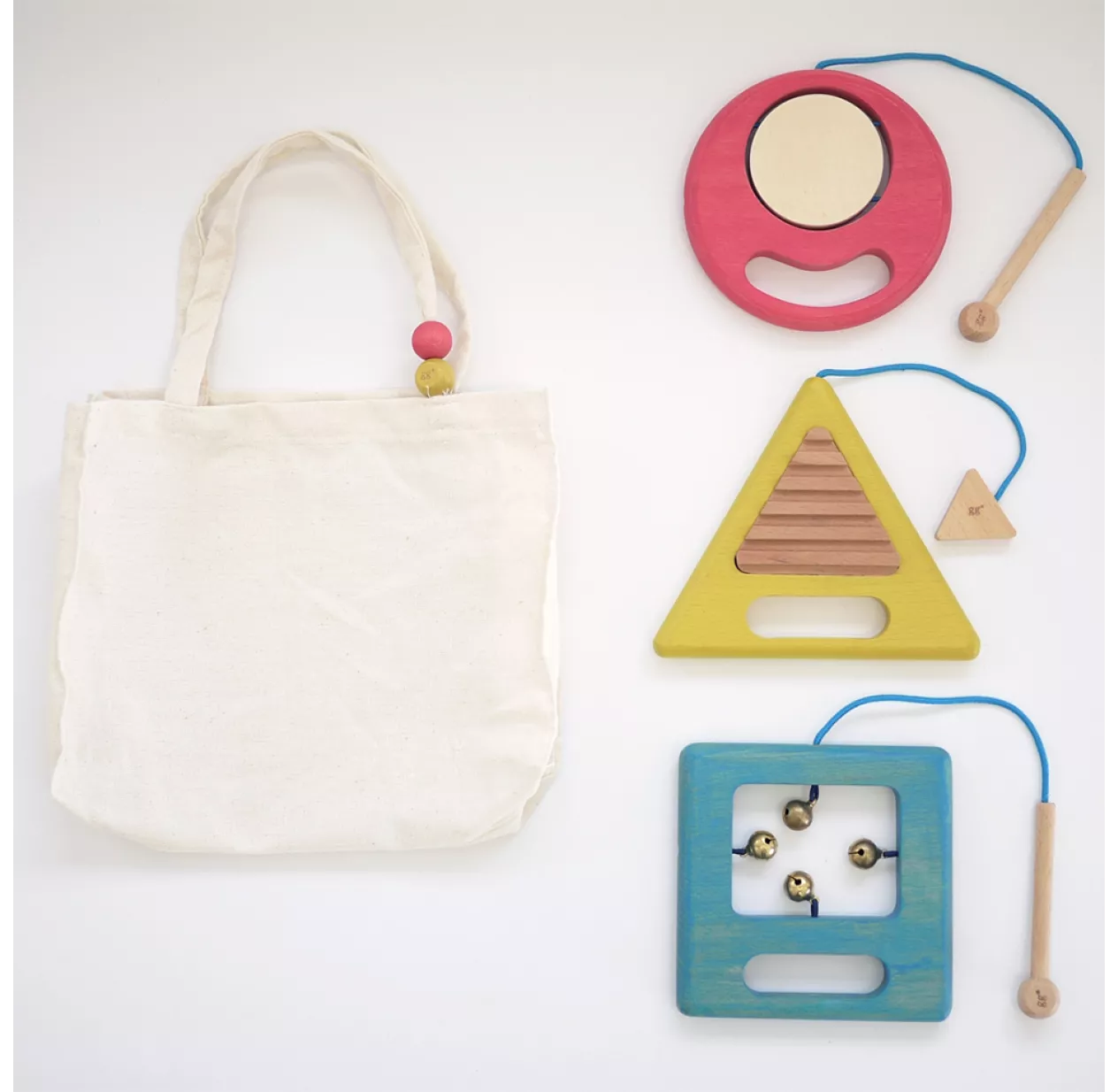Les percussions de Kiko+ est un ensemble de chouettes jouets en bois ! Pour éveiller les petits musiciens et passer d’agréables instants de jeux. Pour créer de jolies mélodies et inventer de beaux rythmes. Le set de percussions Gakki est composé d’une batterie circulaire, d’un triangle et d’un carré avec des cloches, qui produisent des sons différents. A ranger dans le petit sac en lin livré avec.