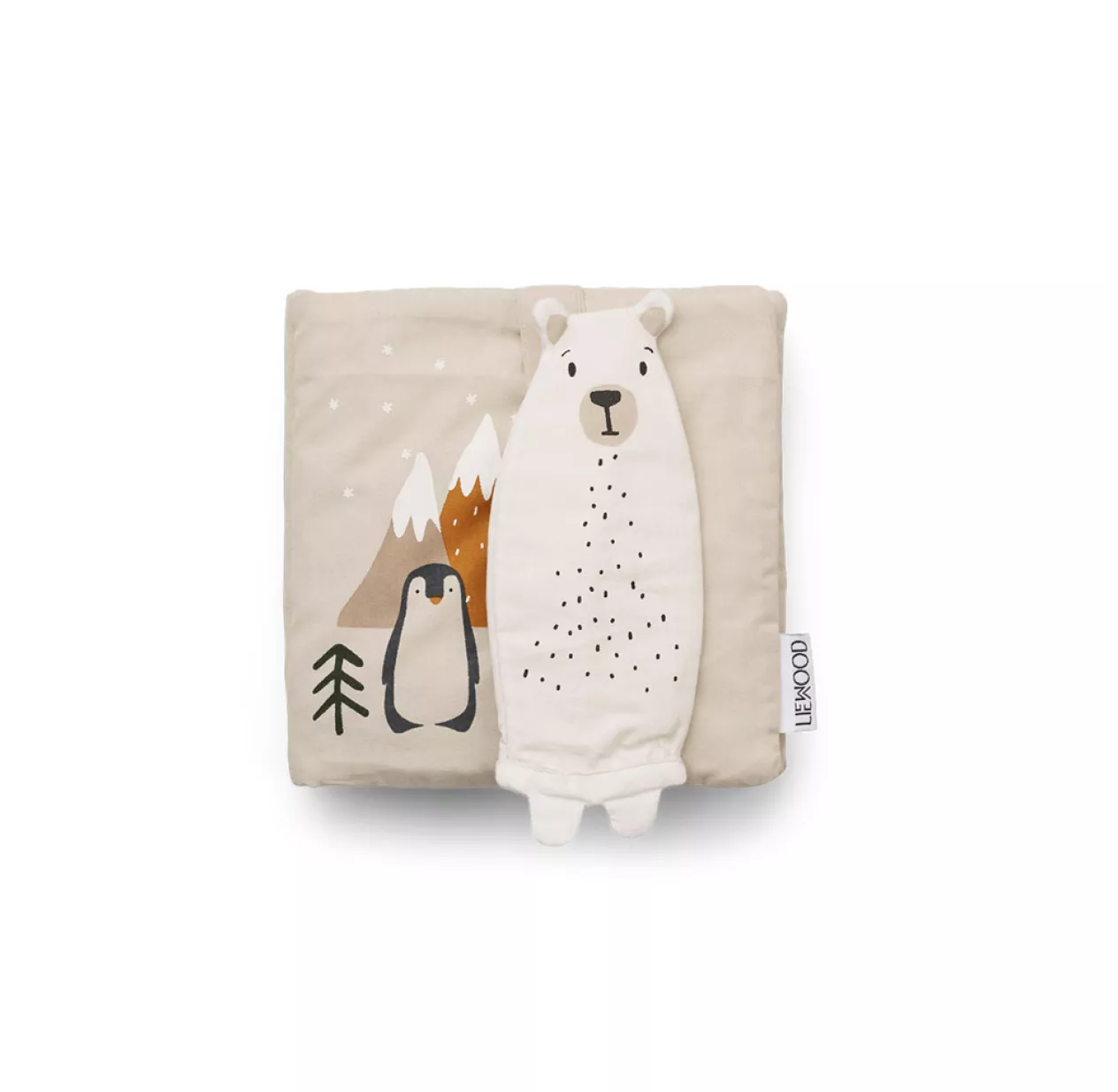 Le livre sensoriel Arctique de Liewood est un superbe cadeau de naissance. Ce livre en coton bio constitué de 4 pages recto/verso offre 3 scènes panoramiques à découvrir peuplées d’animaux polaires craquants. C’est un premier livre poétique et ludique, un parfait jouet d’éveil dès la naissance. Le livre en tissu Arctique est composé à 100% de coton biologique. Avec des pages douces à presser et de jolies couleurs, il stimulera votre bébé et lui assurera des heures de jeu !