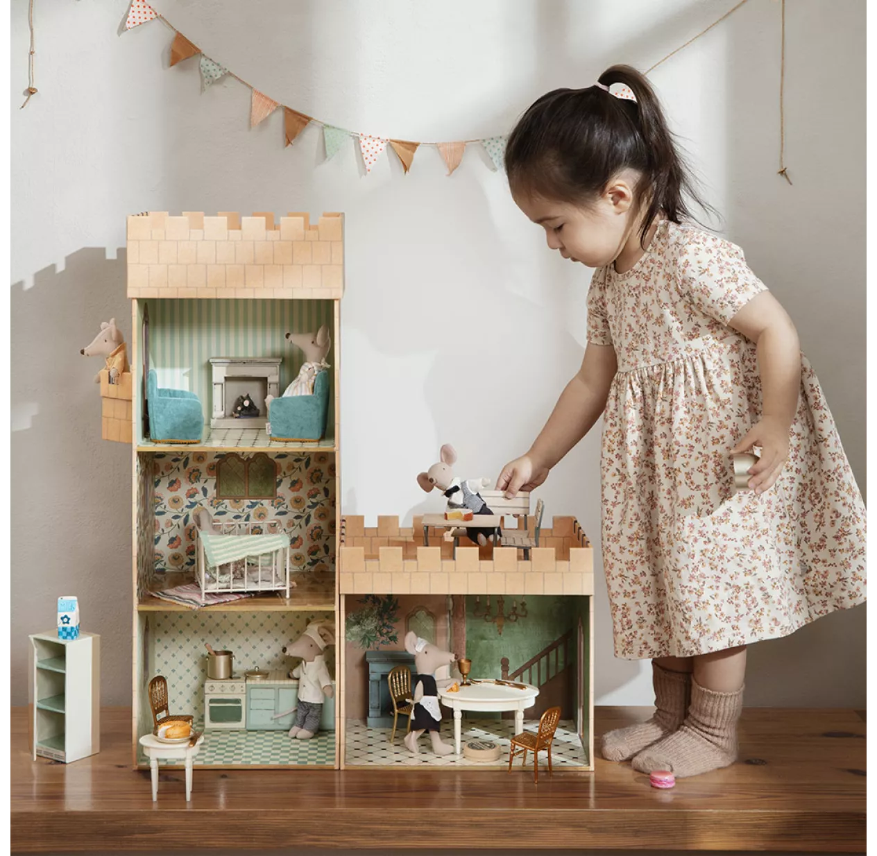 Cette cheminée miniature a été conçue pour les souris et lapins Maileg. Rétro et déco, c’est la cheminée incontournable de vos petites créatures Maileg ! On craque pour son look rétro vintage et son foyer qui s’allume pour créer une atmosphère cosy et chaleureuse ! Elle est équipée d’un interrupteur et alimentée avec une pile fournie. Bref, comme toujours chez Maileg, les détails sont soignés. Vous l’aurez compris, cette adorable cheminée appartient au monde miniature de Maileg. Un univers qui rappelle celui de Cendrillon, de Basile Détective ou encore de Ratatouille, tout en minutie, détails et poésie. Il se construit et se complète au fil des années, au fur et à mesure que votre enfant grandit, au fil des collections et de vos envies. Rétro, belles, poétiques et un brin désuètes, les créations Maileg sont des jouets qu’on a plaisir à offrir aux enfants tant ils nous rappellent nos jouets d’antan !
