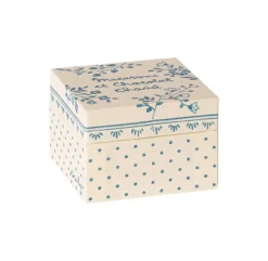 Cette petite boîte en carton comprend tout le nécessaire pour partager un goûter entre petites souris ! Un ensemble de 4 macarons disposés dans un joli plat sur pied et agrémenté d’un napperon en dentelle de papier. Le monde miniature de Maileg qui rappelle celui de Cendrillon, de Basile Détective ou encore de Ratatouille, est tout en minutie, détails et poésie. Un univers à compléter au fil des années, au fur et à mesure que votre enfant grandit, au fil des collections et de vos envies. Rétro, belles, poétiques et un brin désuètes, les créations Maileg sont des jouets qu’on a plaisir à offrir aux enfants tant ils nous rappellent nos jouets d’antan !