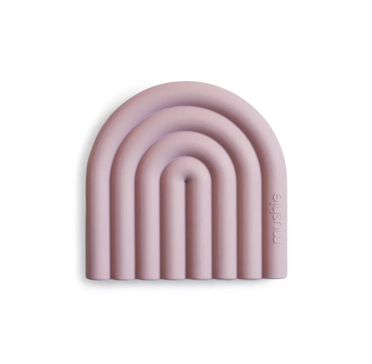Ce magnifique jouet de dentition en forme d’arc-en-ciel est en silicone alimentaire. On aime son coloris mauve pastel et son design à la fois minimaliste et très graphique, qui en fait un objet déco à part entière. Chaque couleur de l’arc-en-ciel est matérialisée par un cylindre qui permet une bonne prise en main et offre une texture idéale pour masser et soulager les gencives de votre bébé. Un jouet de dentition beau et pratique, parfaitement dans la tendance : )