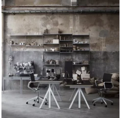 Vous pouvez également rajouter les caissons de rangement, le plateau de bureau, les étagères pour magazines, les étagères métalliques, la table murale pliante et tous les autres rangements modulables String. Vous pouvez aussi mélanger les couleurs.