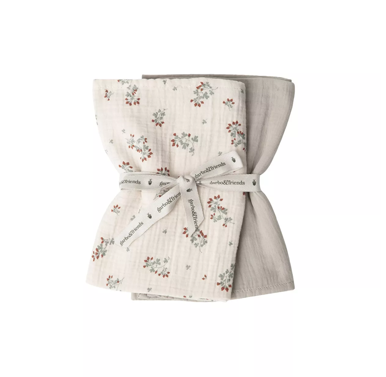 Le pack de langes Clover de Garbo & Friends rassemble 2 petites couvertures langes en 60 x 60 cm : Un gris doux et un imprimé de fleurs de trèfle. Réalisés dans une mousseline de coton bio ultra douce certifiée Oeko-Tex, les langes Garbo & Friends deviendront vite des basiques. Multi usages, peu encombrants et graphiques, ils vous accompagneront dans toutes vos aventures. Chez Les Enfants du Design, on craque tout particulièrement pour la palette de couleur d’antan et le côté désuet de ce motif fleuri qui nous ramène avec nostalgie au temps de nos grand-parents.