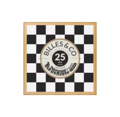 Mini Box Old School Black & White : Le pouvoir du damier noir et blanc ! Le décor de papier de la Mini Box Old School Black & White est entièrement tressé à la main à l’Atelier Billes & Co. Travail de petites mains habiles pour effet grandiose Une expérience inédite, optique et esthétique. De la bombe ! 25 billes noires et blanches pour des heures de jeux freestyle : À 2, en équipe, l’un contre l’autre, une course, un circuit, tout est permis !