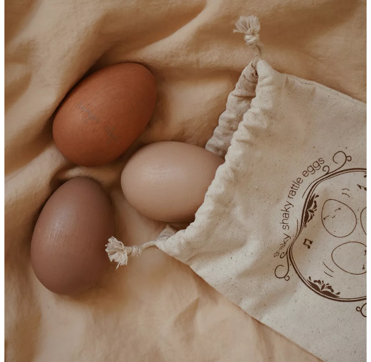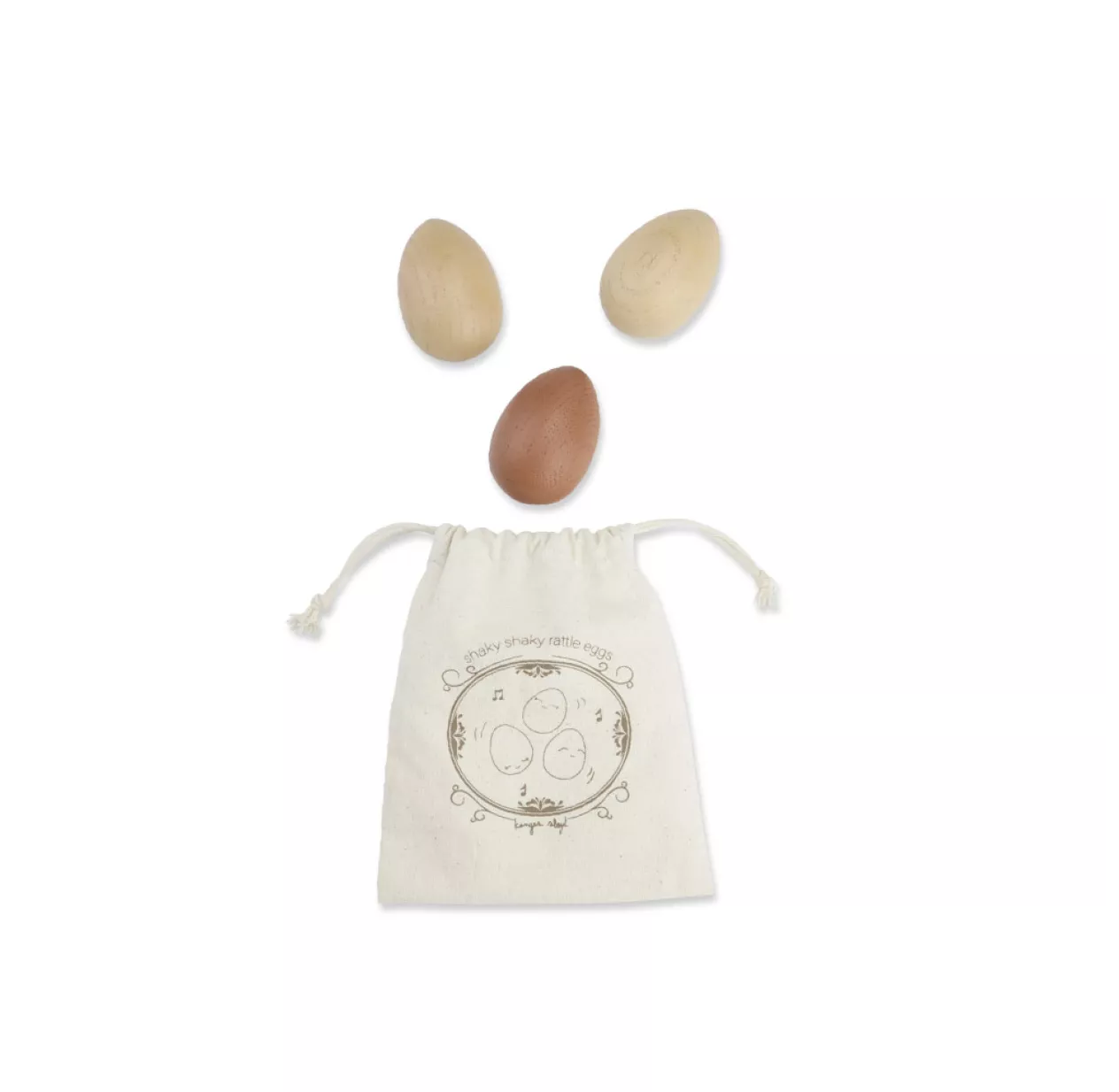 Ces 3 jolis hochets en forme d’oeufs sont en bois de hêtre naturel FSC. Chacun offre un tintement différent pour éveiller les sens de votre bébé dès 1 an. Faciles à prendre en main, ils ont été pensés pour les petites mains de vos enfants dès 1 an. Les trois oeufs d’éveol Konges Sloejd sont livrés dans un joli pochon en toile de coton bio pour être transportés facilement.