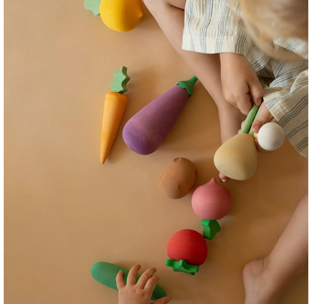 Comment résister au graphisme et au design de ce magnifique set de légumes en bois ! A la fois décoratifs et gourmands, ils ont déjà fait un malheur chez les petits comme chez les grands ! Ce set de légumes en bois est composé de 10 pièces: 1 aubergine, 1 oignon, 1 courgette, 1 celeri, 1 radis, 2 champignons, 1 tomate et 1 pomme de terre. Un bel objet durable qui saura séduire l’oeil esthète des petits comme des grands.