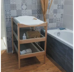 La nouvelle table à langer Margot de Combelle offre une plus grande modularité. Toujours équipée de 3 plateaux et d’un porte-serviette, la table à langer Margot Combelle dispose d’un plateau amovible. Ses 2 plateaux inférieurs offrent de vastes rangements pour organiser votre table à langer et vous faciliter la toilette de bébé. La table à langer Margot dispose également de 2 roulettes arrière pour un déplacement plus aisé. Ses dimensions standards vous permettent de lui associer le matelas à langer de votre choix. Elle convient aux bébés de la naissance jusqu’à 12 mois ou 11kg maximum. Nous avons sélectionné la table à langer Margot Combelle pour sa qualité de conception, son design sobre, son prix attractif et sa fabrication 100% française ! Autre atout et non des moindres, le bois de hêtre utilisé pour la fabrication de la table à langer Combelle provient de la filière bois du Cantal et départements limitrophes. Il en ressort une gestion forestière responsable compatible avec les équilibres écologiques (certification PEFC).